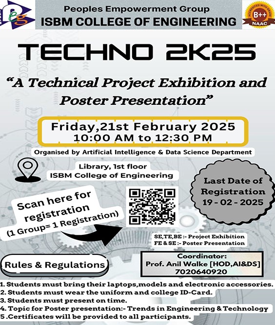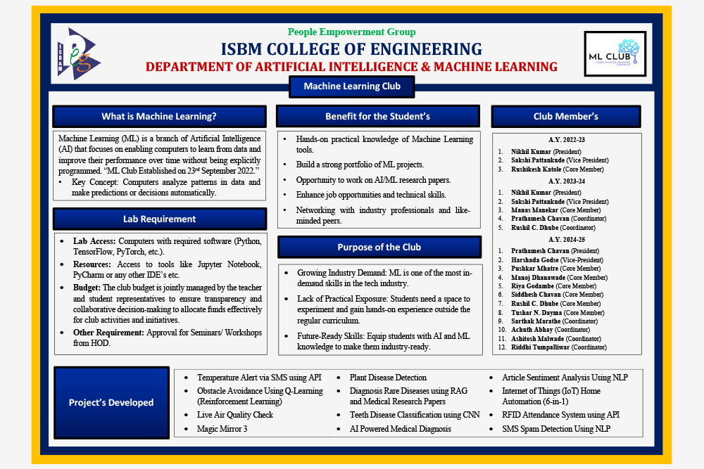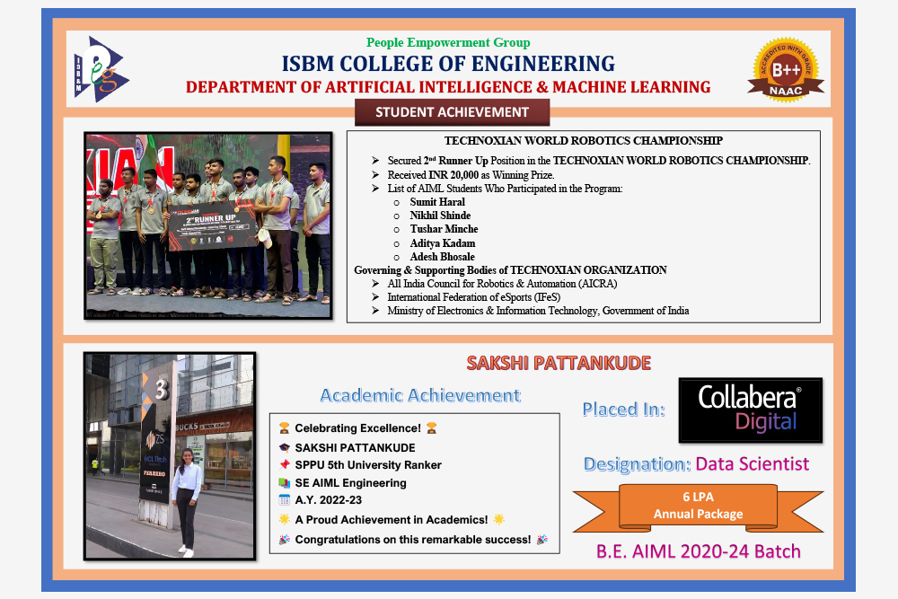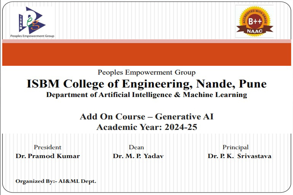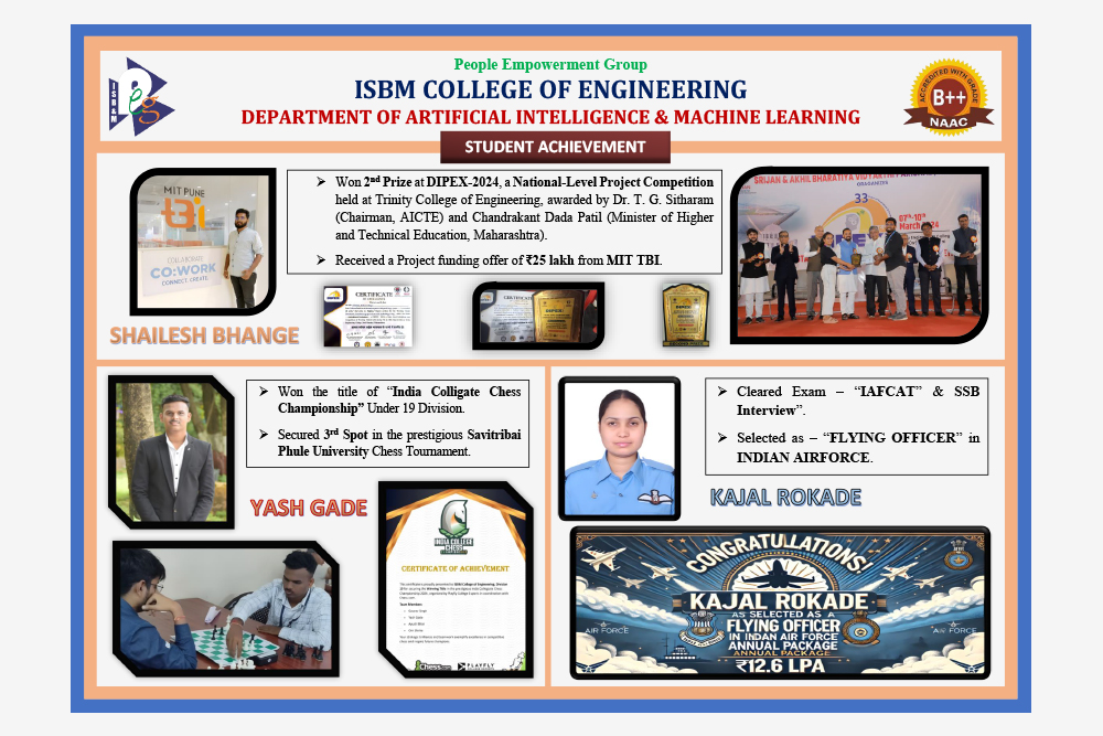 Welcome to the Department of Artificial Intelligence and Machine Learning at ISBM College of Engineering, Nande , Pune.