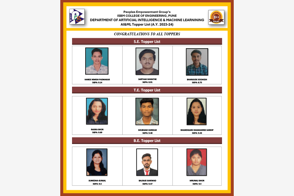 | 3 | AI&ML | BE | RASIKA BHOR | 9.85 | 1st | ![]() |